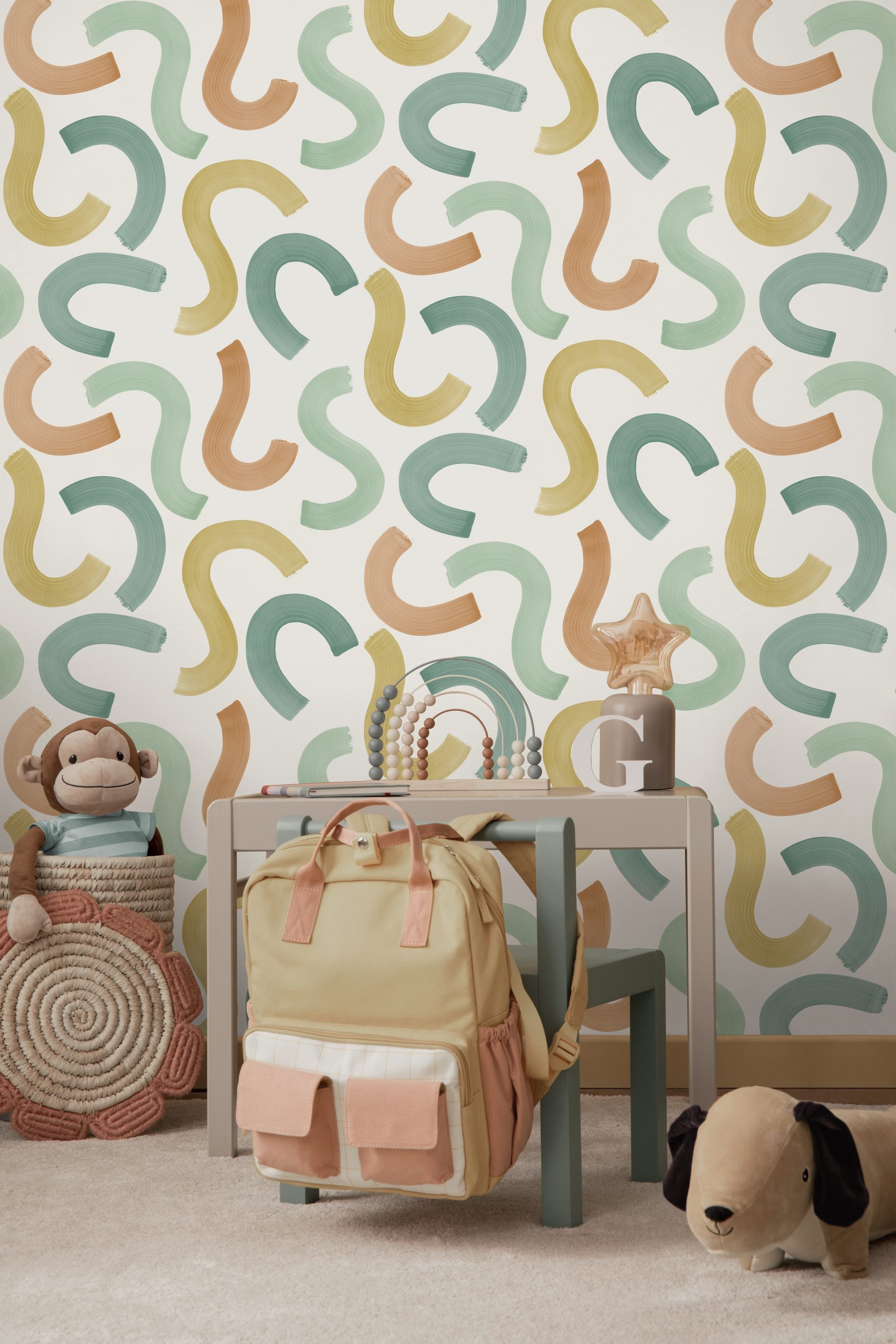 Ge ditt barns väggar en klick kreativitet med denna livfulla tapet med djärva, handmålade penseldrag.