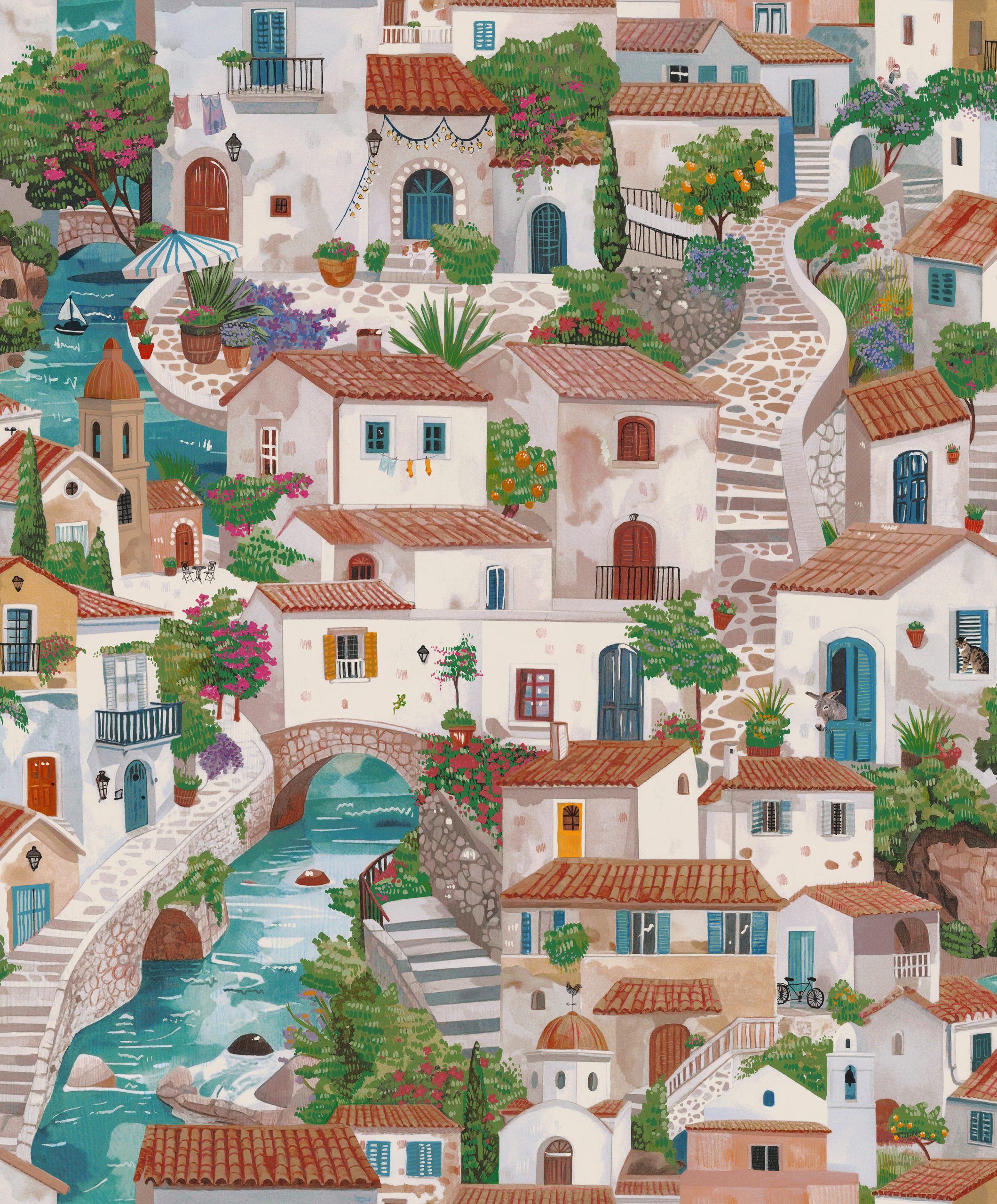 En tapet som frammanar den tidlösa charmen hos Italiens solbelysta kuster och städer, en poetisk blandning av arkitektur, färg och fantasi. Denna tapet förvandlar vilket rum som helst til en medelhavsdröm.
